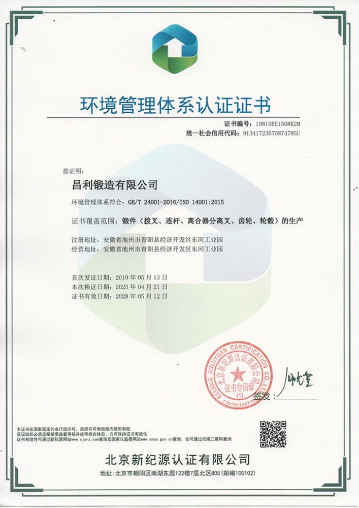 环境管理体系认证证书(中)